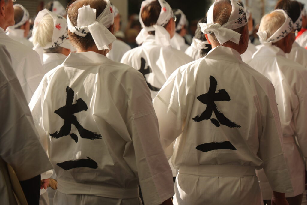 最後は神社の回廊に囲まれた枡形で船を3回廻します。失敗したら怪我人が出るくらいのスピードで動くのでかなり迫力がありました。思っていたよりだいぶ暗く、全くシャッタースピードが足りず。