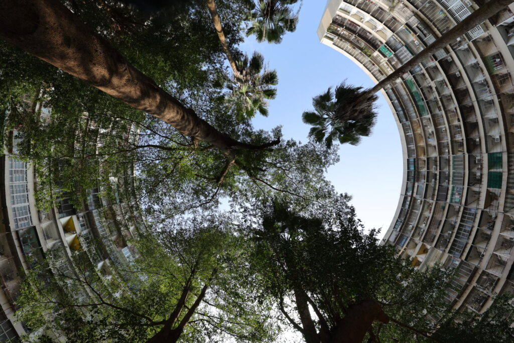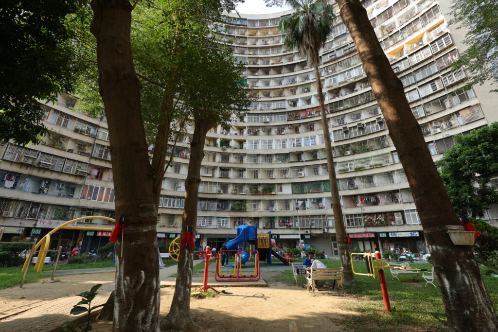 写真を撮る人には有名なスポット。小さい公園を中心にして湾曲したマンションが建っています。ここは南部最大の眷村で、国共内戦の後に大陸から移住してきた人の居住地だそうです。