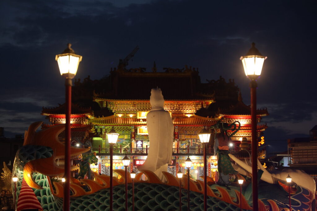 今年行った場所の中ではここが一番ぶっ飛んでいました。240mの道の両脇に塔が8つ並んでその先に108mの大仏が鎮座しています。このスケール感はなかなか味わえないです。市内の寺でも供物が山積みになっており、参拝客がひっきりなしに訪れていたので台湾は信仰の篤い方が多いようです。